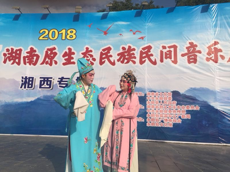 11月1日下午2:30,全国文化信息资源共享工程项目“湘音•乡韵”湖南原生态民族民间音乐展演活动在永顺县隆重开幕,来自大湘西的40余名民族民间艺术家引吭高歌,用来自天籁的美妙之声为广大观众献上了独具地域和民族特色的视听盛宴,让人们领略到湘西丰富动人、多姿多彩的民族文化。我县辰河高腔州级传承人郑敏和在辰河高腔艺术界造诣颇深的向词贤表演的《琴桃》片段,以其优美动听的唱腔和细腻传神的演绎深得专家和观众的赞赏,本次活动通过网络全球直播。