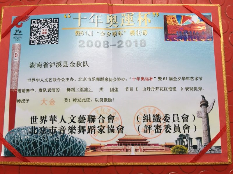 县金秋队荣获“十年奥运杯”暨61届金夕年华艺术节大金奖