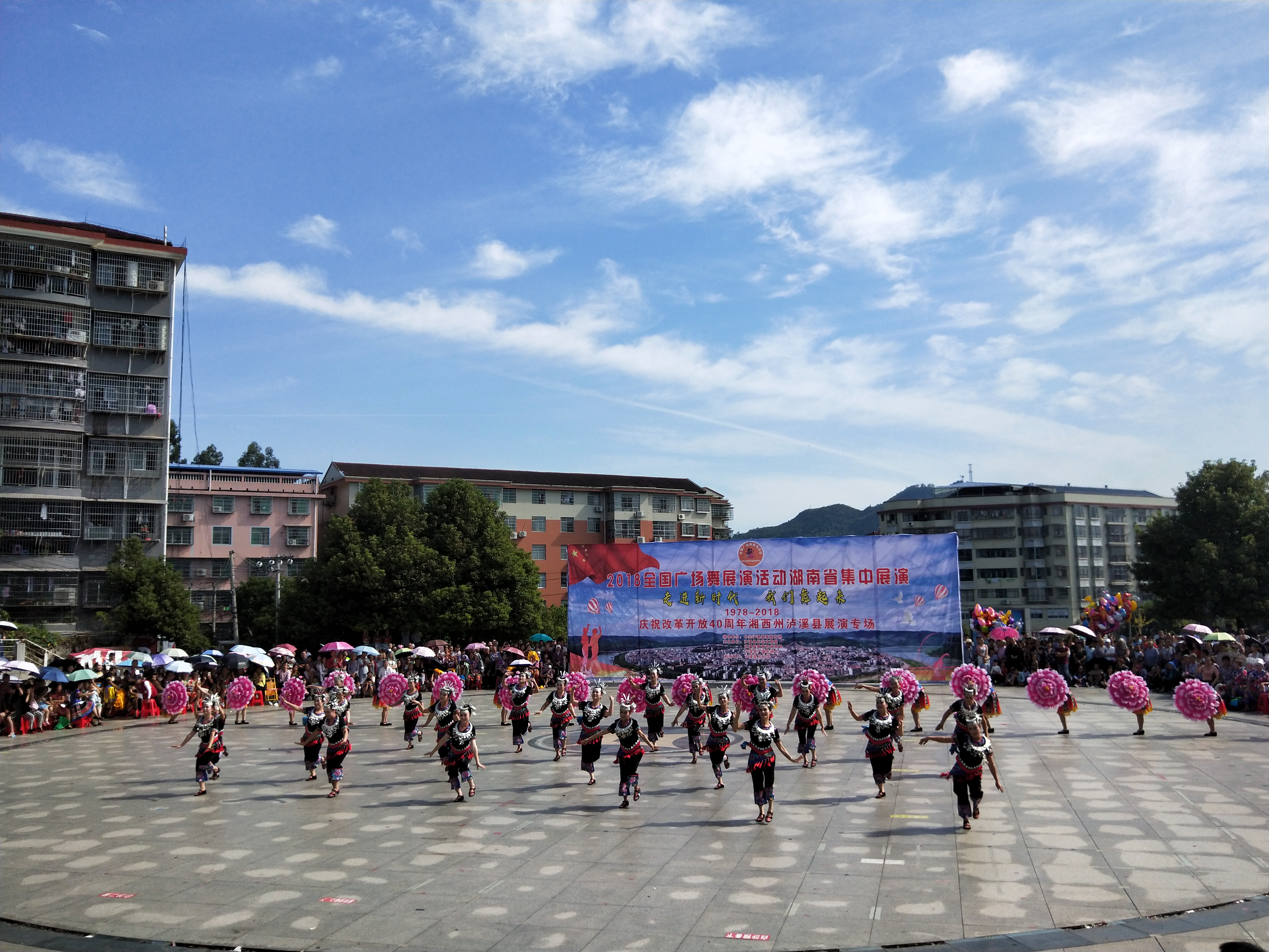 由中共泸溪县宣传部指导,泸溪县民宗文旅局、教体局、广播电视台联合主办,县文化馆承办的“走进新时代·我们舞起来”2018年全国广场舞泸溪县展演专场决赛于9月9日上午在盘瓠广场隆重举行,活动邀请了国家、省、州舞蹈家协会和省民族歌舞团专家担任评委。