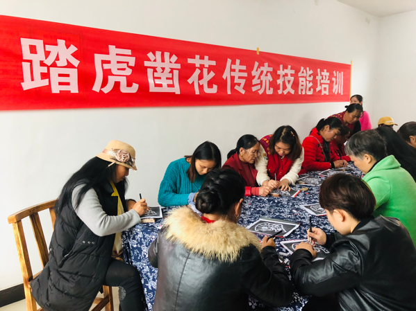 ,由踏虎凿花传习所举办的踏虎凿花传统手工扶贫技能培训班在泸溪县浦市古镇举行了开班仪式,由踏虎凿花州级传承人邓启刚、刘克梅授课,参加学员