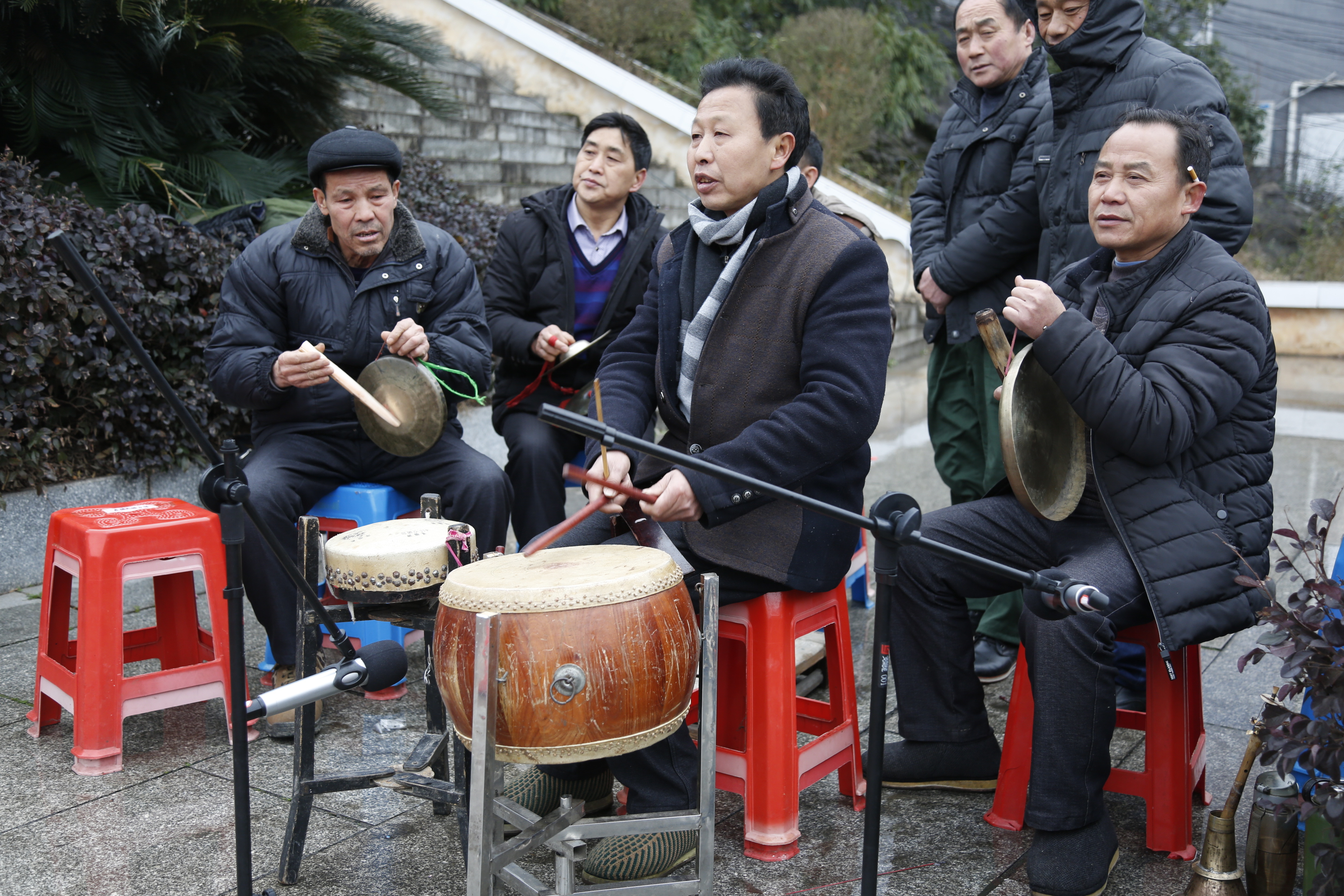 日(正月初四)上午,盘瓠文化广场锣鼓铿锵、唢呐悠扬、戏曲味甚浓,辰河高腔《抢棍》正在演出。《抢棍》是辰河高腔传统剧目《白兔记》中的一折,讲述了李三娘哥嫂设计陷害其夫刘智远,明知瓜园有瓜精伤人,还让其去瓜园看瓜。三娘看破计策,力劝智远不要前往,智远不听劝阻执意前去,三娘再三抢夺智远的棍棒的故事。剧中的曲牌《红衲袄》、《驻马听》等唱出了刘智远的壮志豪情和李三娘的纤纤柔情。