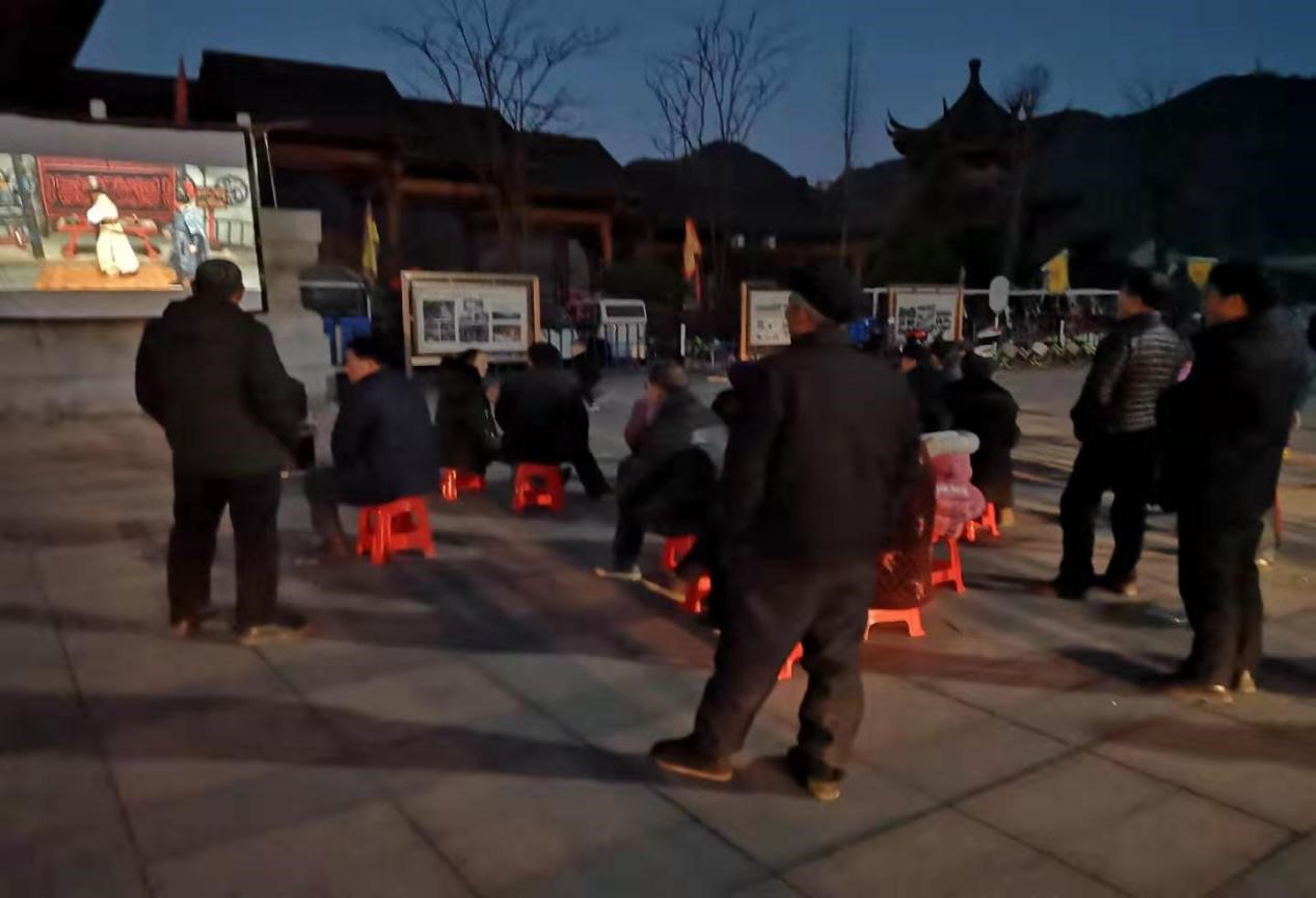 傍晚,吃过晚饭的居民陆续到场等候着电影的开始。电影放映人员早早准备好凳椅,调试放映设备,准备播放《赵子龙智取桂阳》,该剧是以历史典故为背景题材的湘剧电影,深受老年朋友的喜爱。一位看了影片的群众表示:“现在忙碌的生活让邻里间的距离越来越远了,大家出来一起看看电影、聊聊天,交流一下感情,重温美好回忆,生活好像又回到了许多年前,这一非常好。”